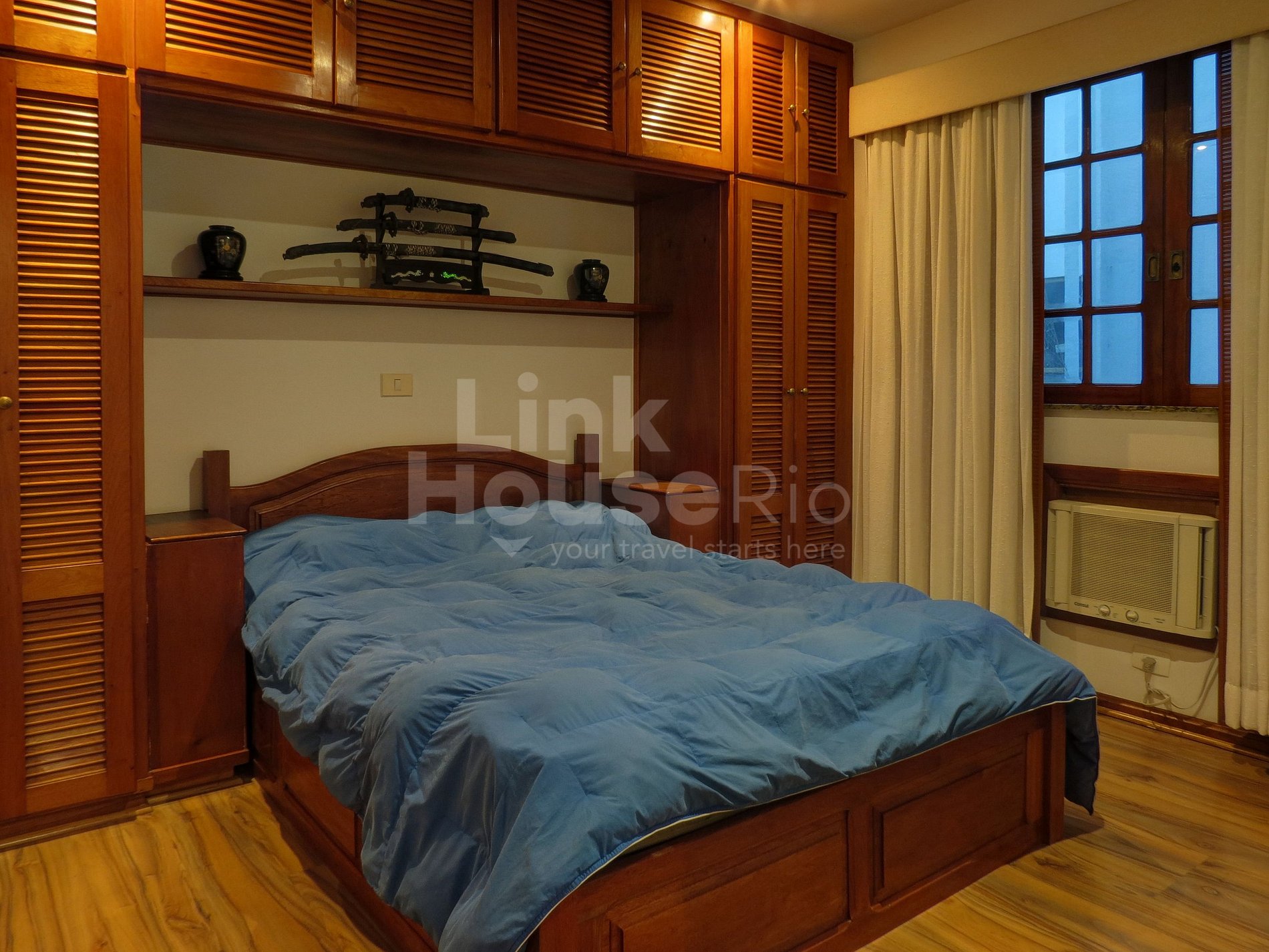 It has 3 full bathrooms + 1 toilet, full kitchen, living and dining room with panoramic views of Ipanema beach and Morro 2 Irmãos.