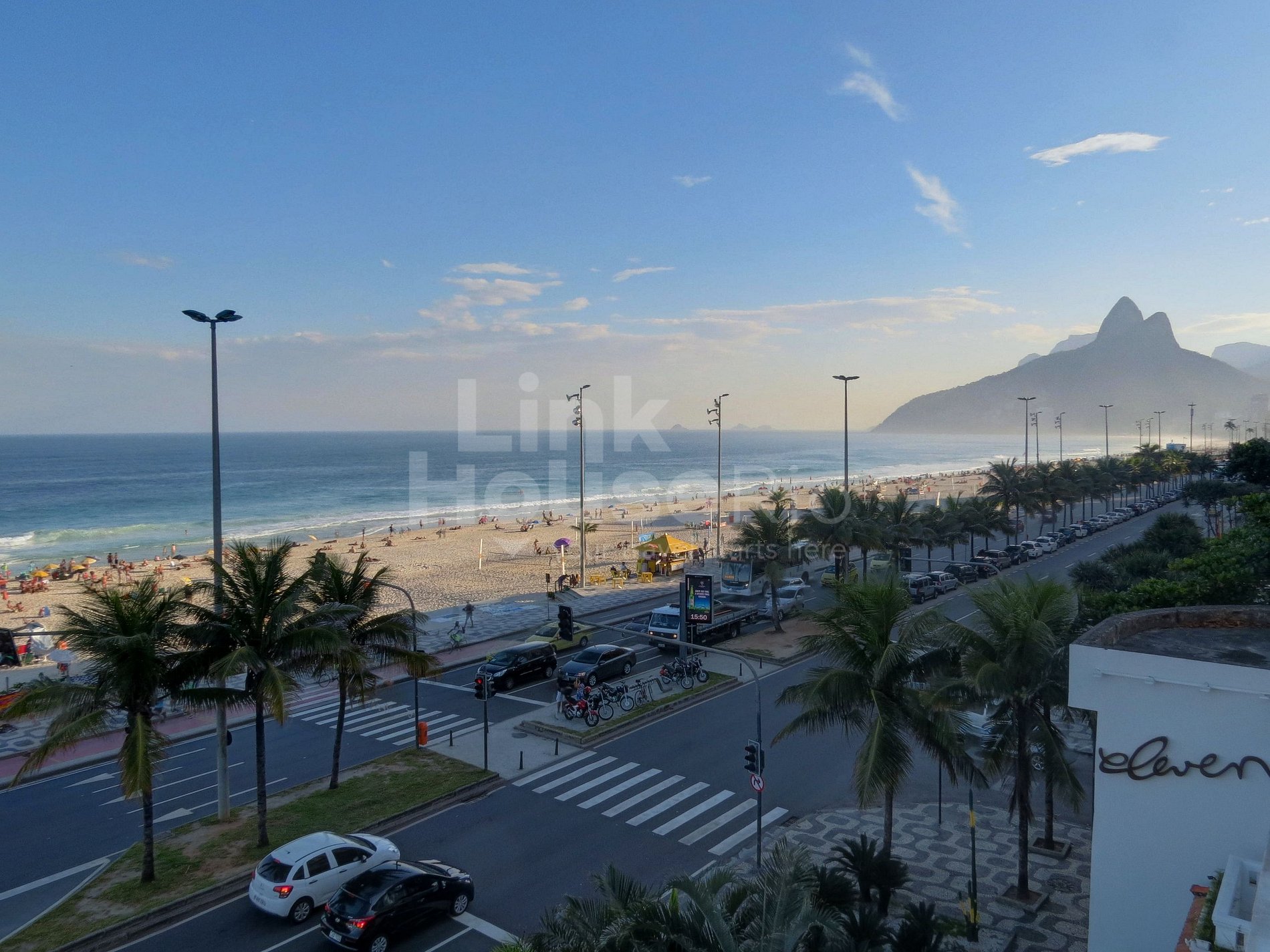 It has 3 full bathrooms + 1 toilet, full kitchen, living and dining room with panoramic views of Ipanema beach and Morro 2 Irmãos.