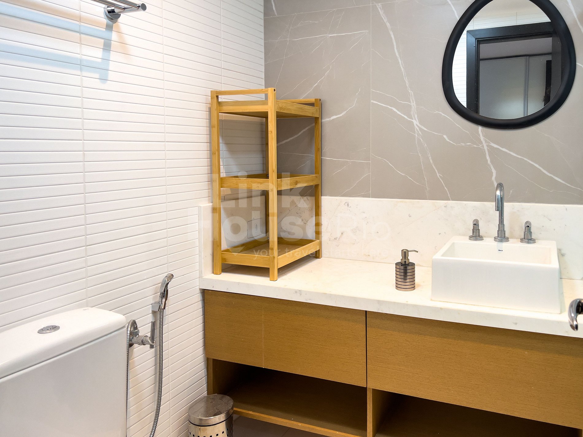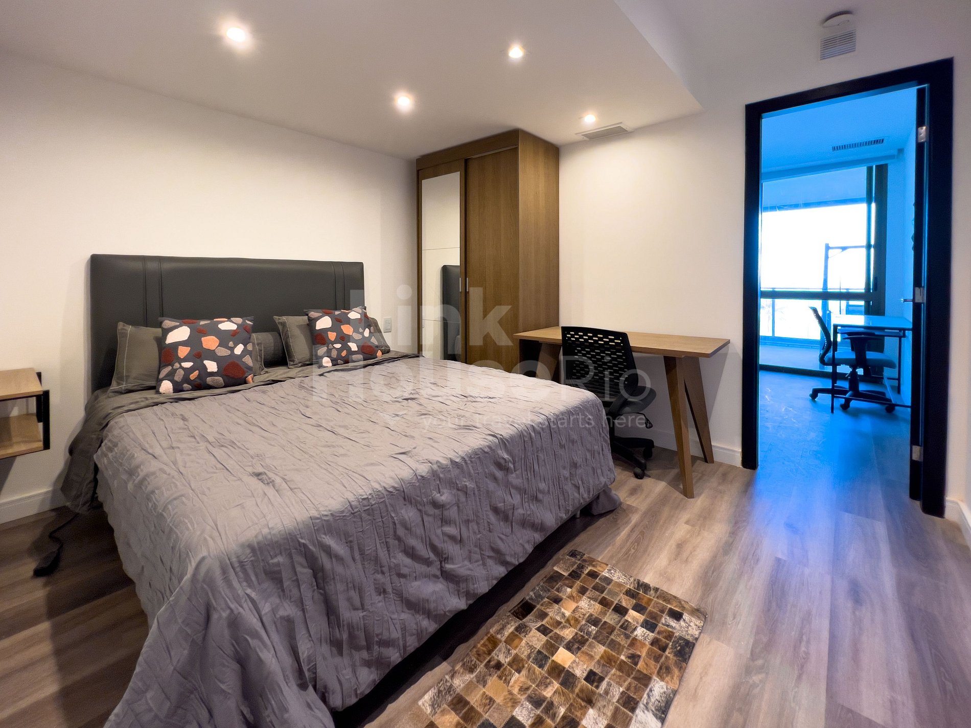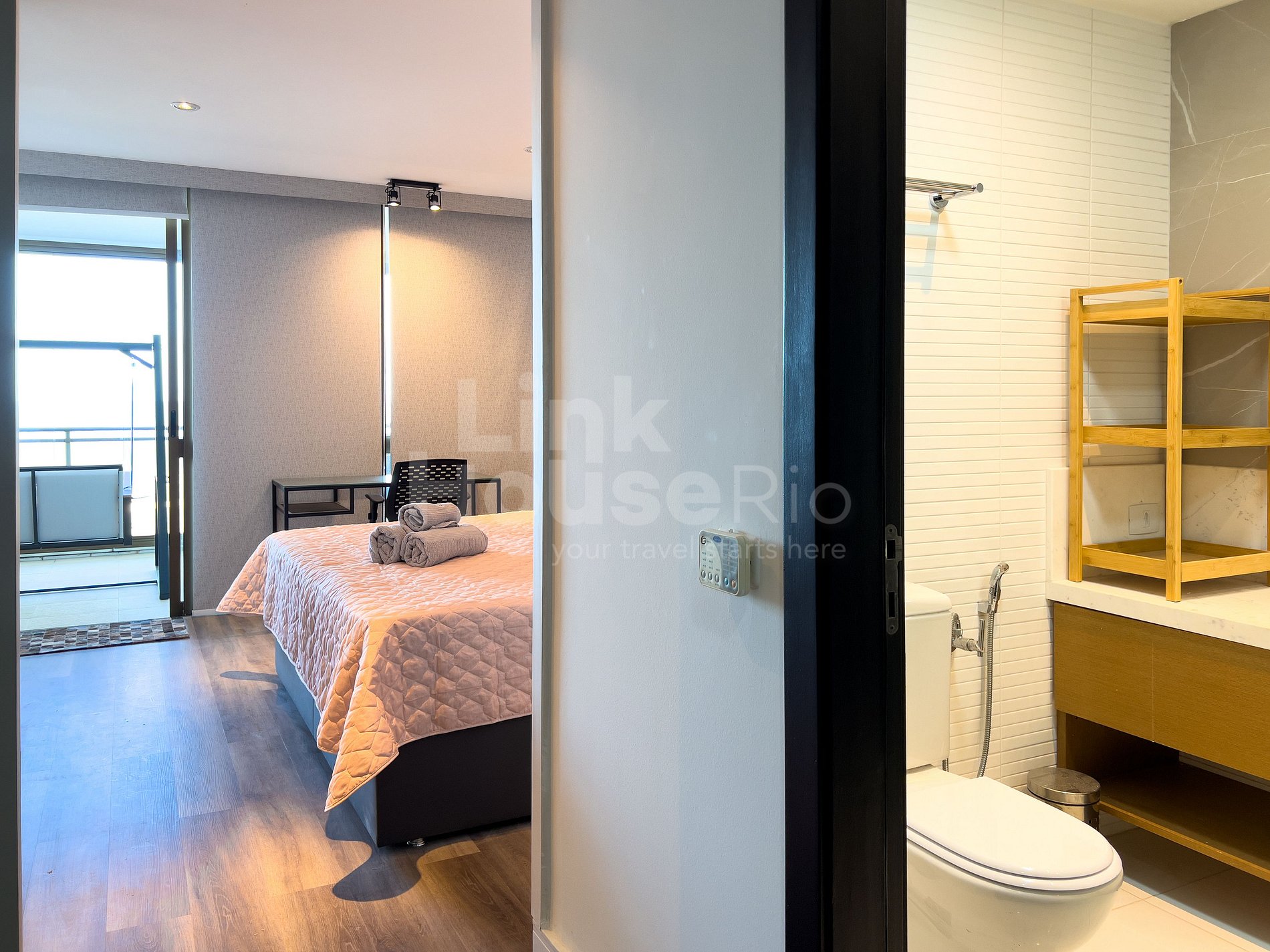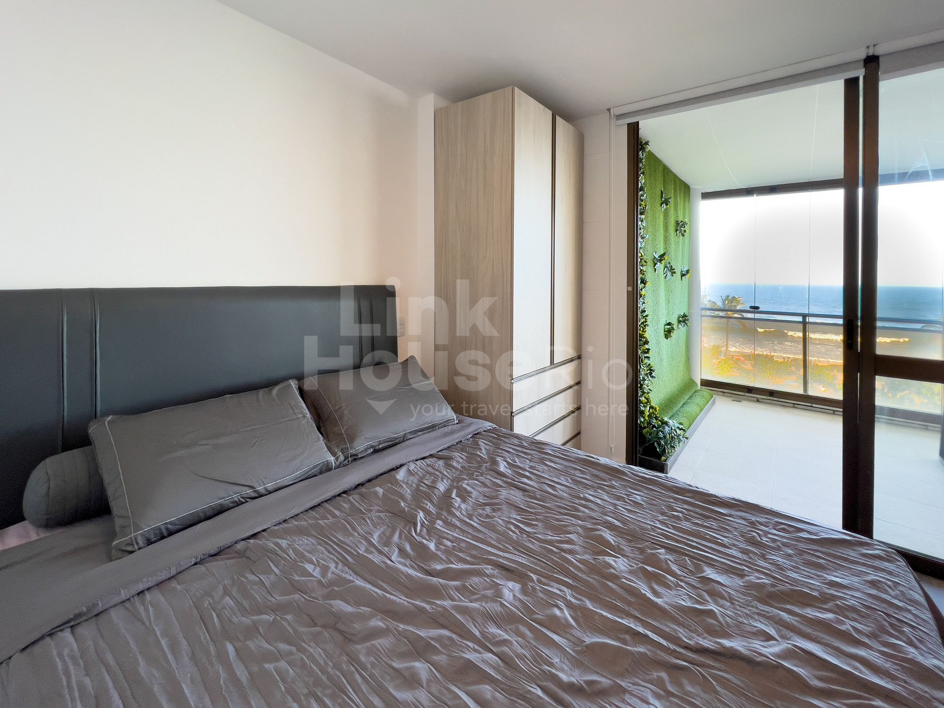 El hogar fue planificado en concepto abierto. La sala integra TV, mesa y cocina. El balcón es gigante, casi una terraza, toda de vidrio para tener esa sensación de borde infinito con el mar. La suite y uno de los cuartos también tiene vista mar. Las camas, armarios y escritorios son óptimos. Los baños, son lindos, tanto la suite como los del pasillo y la sala. LOS AGUARDAMOS