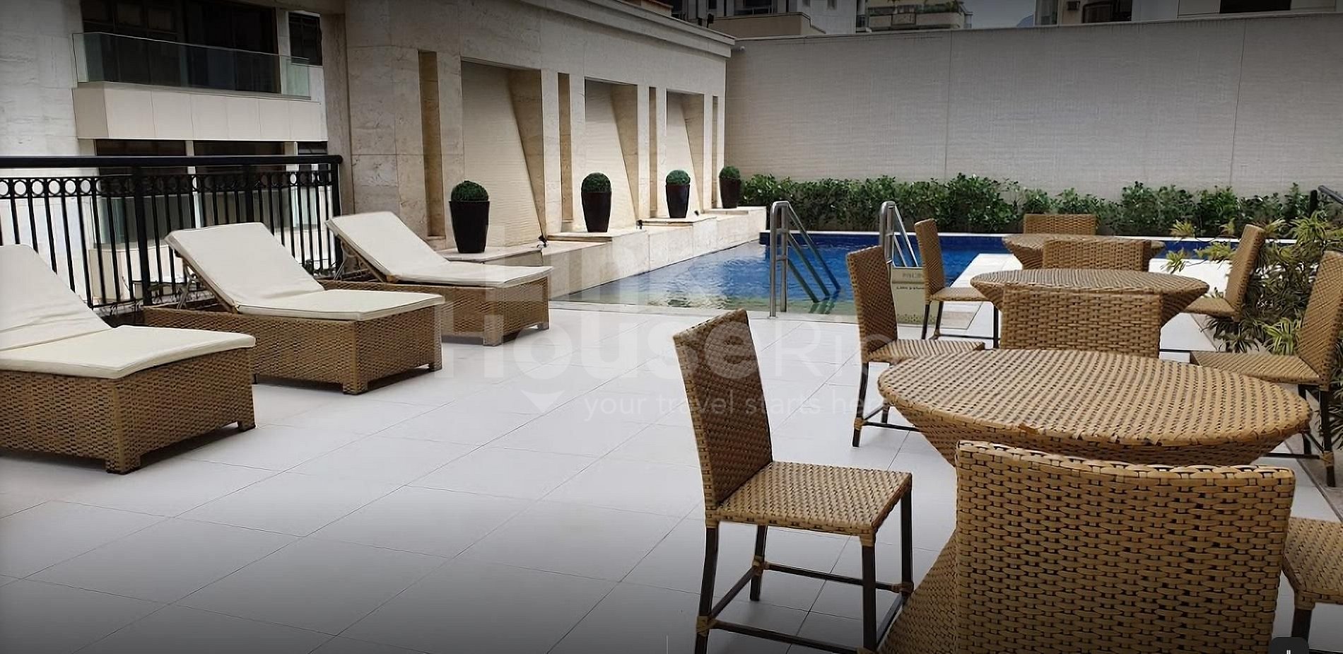 Está ubicado en el condominio WAVE en Ipanema, el cual cuenta con mega infraestructura, con alberca, gimnasio, áreas de descanso y esparcimiento. Incluye limpieza diaria (incluidos domingos y festivos), mantenimiento de edificios, servicios de mensajería y conserjería.