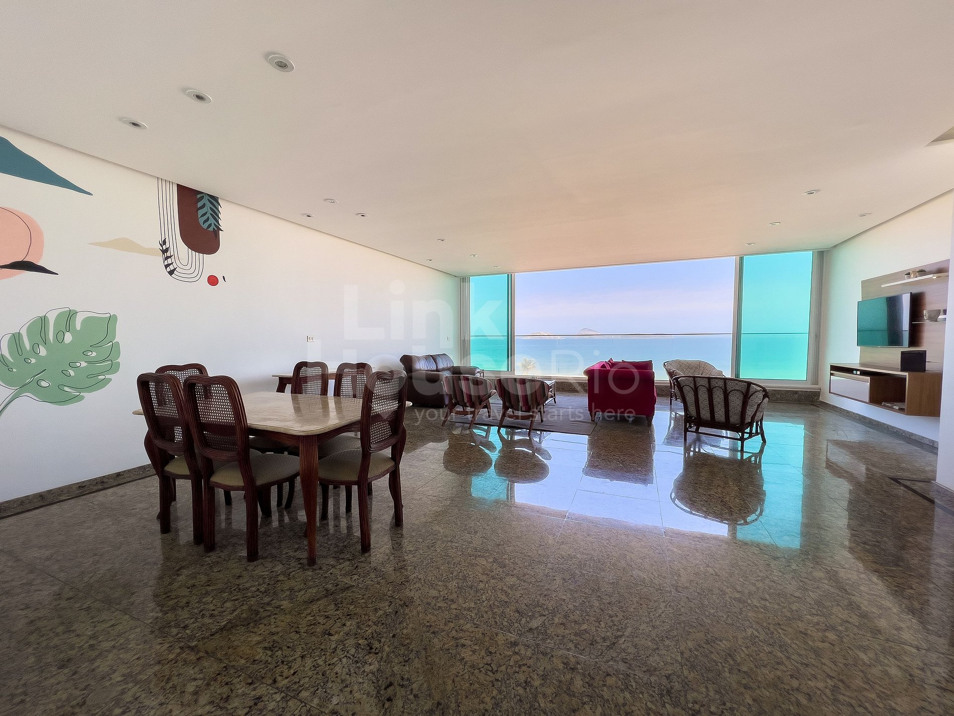 Tiene 3 baños completos + 1 aseo, cocina completa, sala y comedor con vistas panorámicas a la playa de Ipanema y Morro 2 Irmãos.