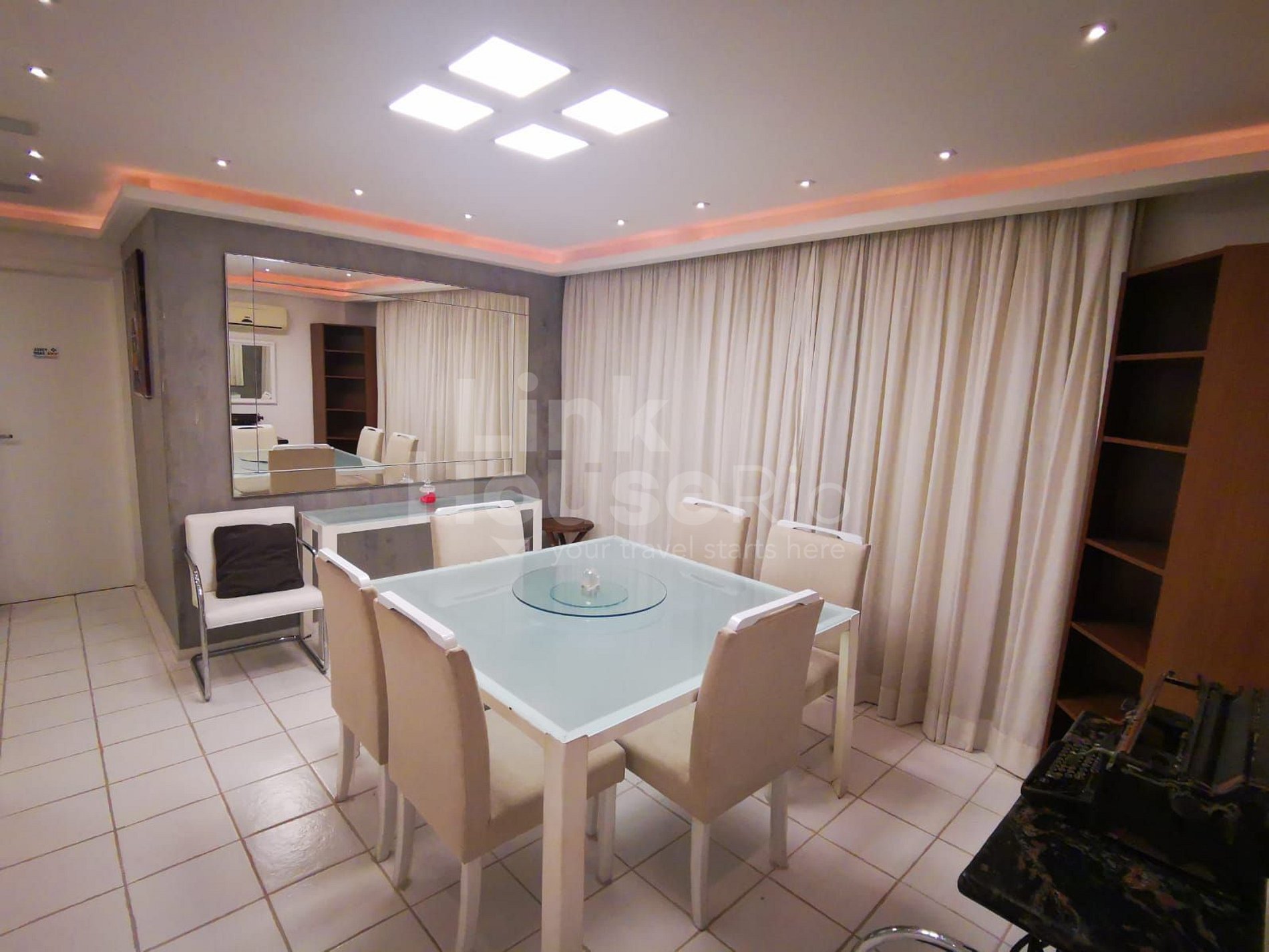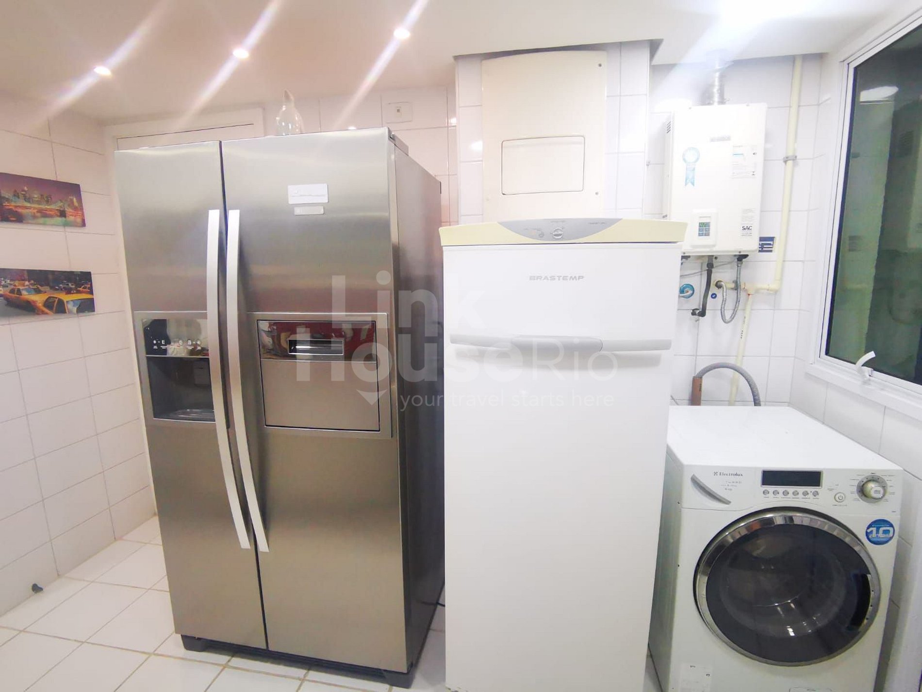 O apartamento possui 450m² de infraestrutura e conta com piscina e churrasqueira privativas, 4 banheiros completos, sala de estar/jantar e cozinha completa, com fogão, forno, geladeira e máquina de lavar.