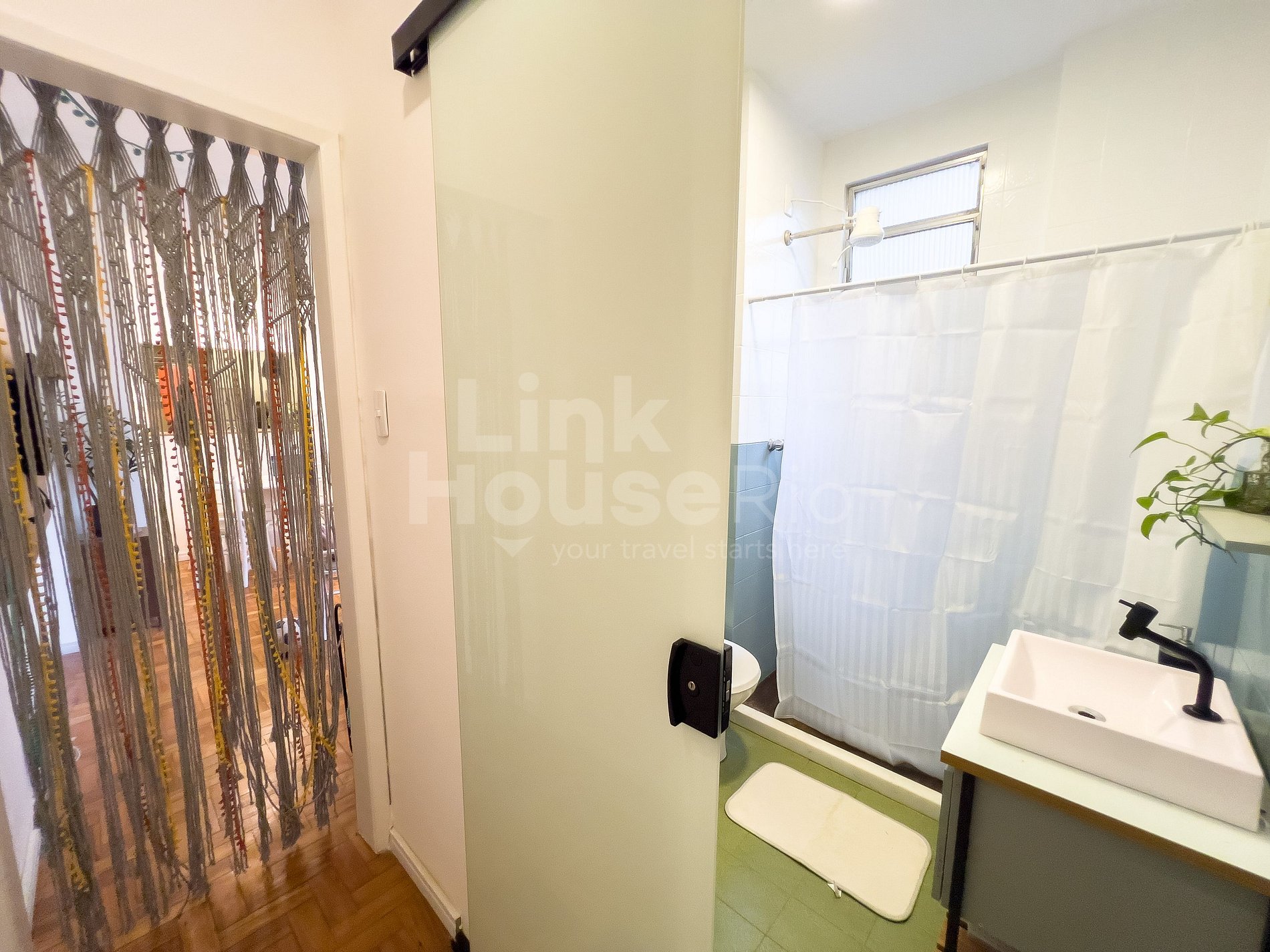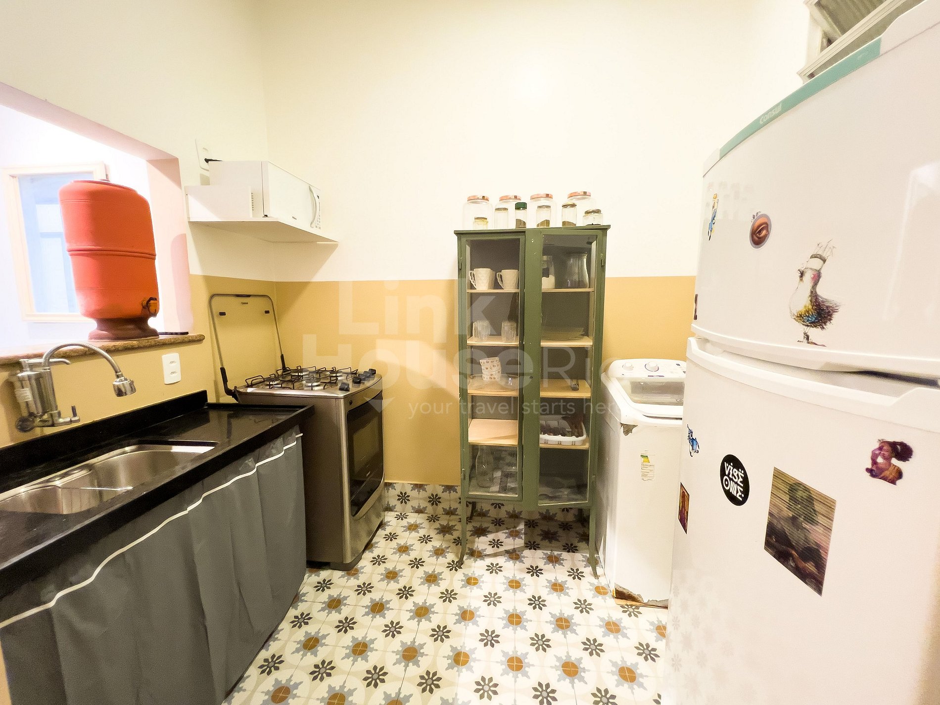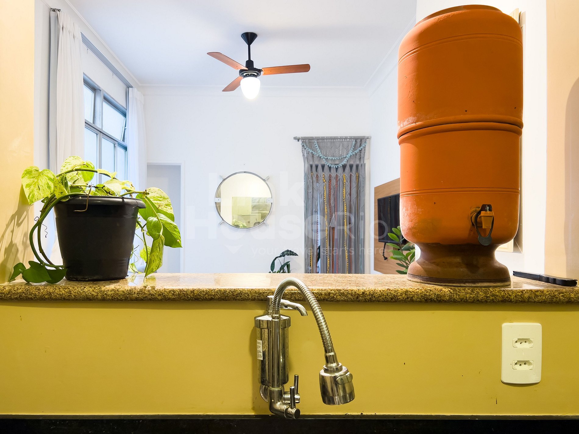 Possui 1 quarto com escrivaninha e grande guarda roupa, com ar condicionado, TV na sala com sofá cama e ventilador de teto, internet WiFi e cozinha compacta.