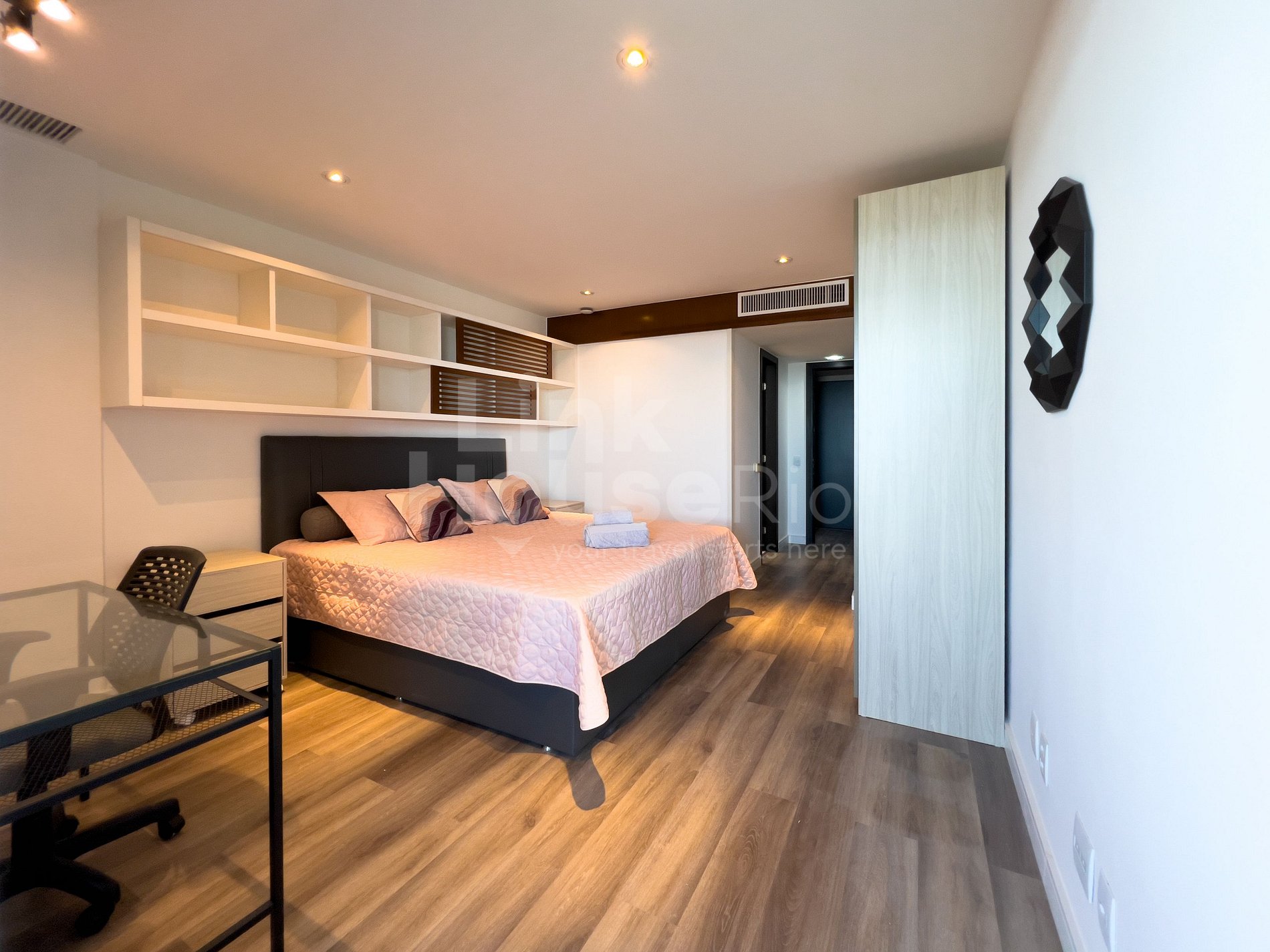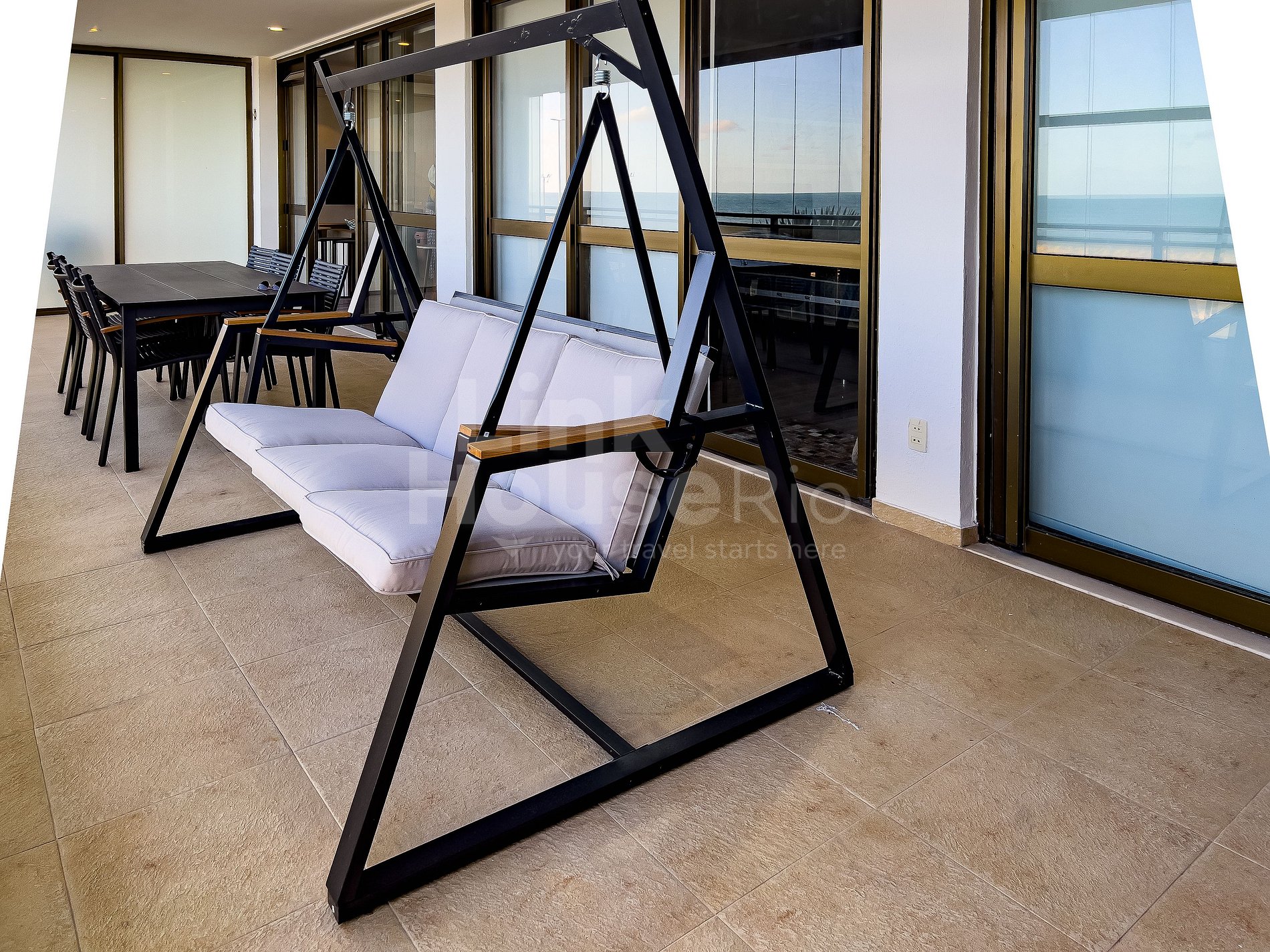 O lar foi todo planejado com conceito aberto. A sala integra TV, mesa de jantar e cozinha. A varanda é gigante, quase um terraço, toda vidrada para ter essa sensação de borda infinita do mar. A suite master e um dos quartos tem vista mar. Os quartos tem ótimas camas, armarios e mesas. Os banheiros são ótimos, tanto o da suite quanto o do corredor e o lavabo. TODO LINDO