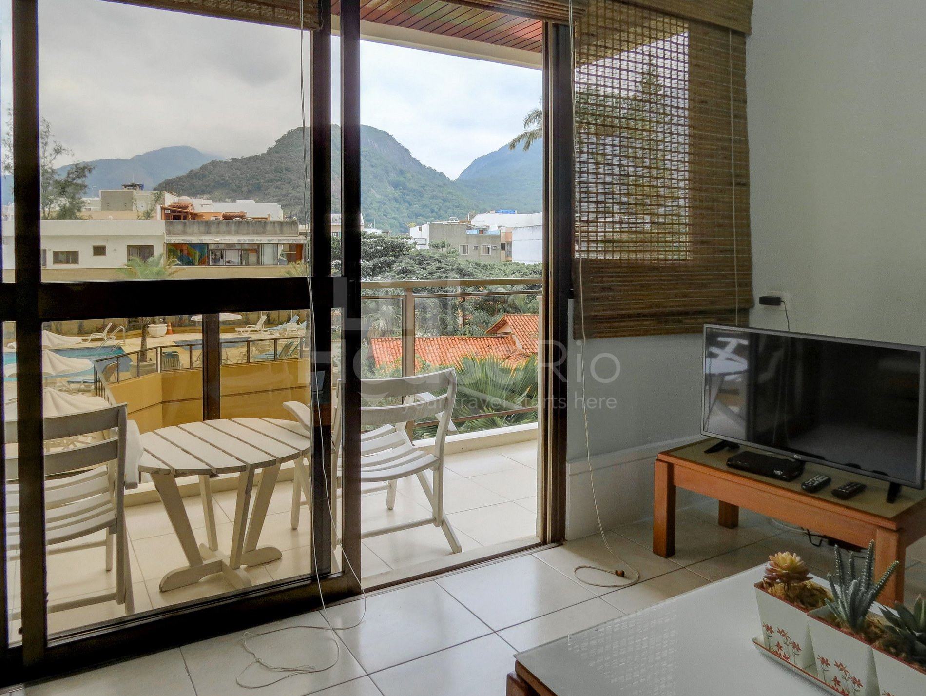 Edificio localizado na zona mais turística do charmoso bairro da Barra, Jardim Oceânico. Rodeado de bares, restuarantes e todo o tipo de comércio. A poucos minutos do Metro, com rápido acesso a qualquer ponto da cidade. O prédio conta com piscina, academia, jacuzzi, salão de jogos, elevador, porteiro e estacionamento.Não perca esta oportunidade de ter a melhor estadia no Rio de Janeiro, com muito conforto e infraestrutura.