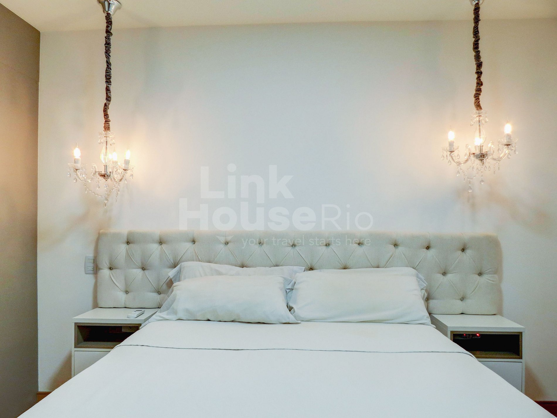 Possui 2 quartos suítes com cama de casal Queen, e comporta até 6 pessoas (bicama na sala). Possui cozinha completa, internet Wi-Fi, máquina de lavar e micro-ondas.