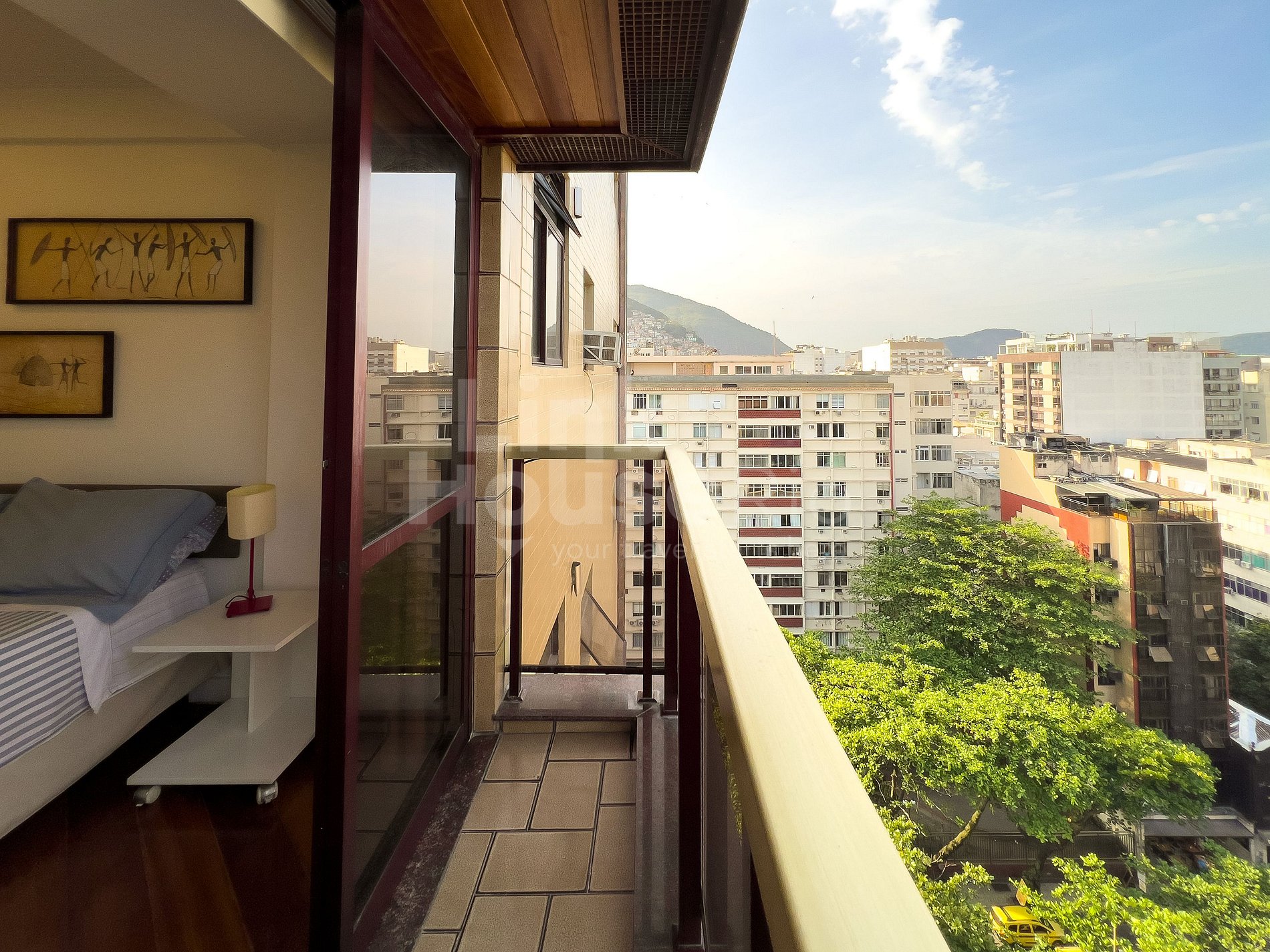 Possui 4 varandas, 1 na sala e 1 em cada quarto. A vista é de tirar o fôlego (direto para a praia de Copacabana e Arpoador). É super aconchegante para um café da manhã e/ou da tarde.