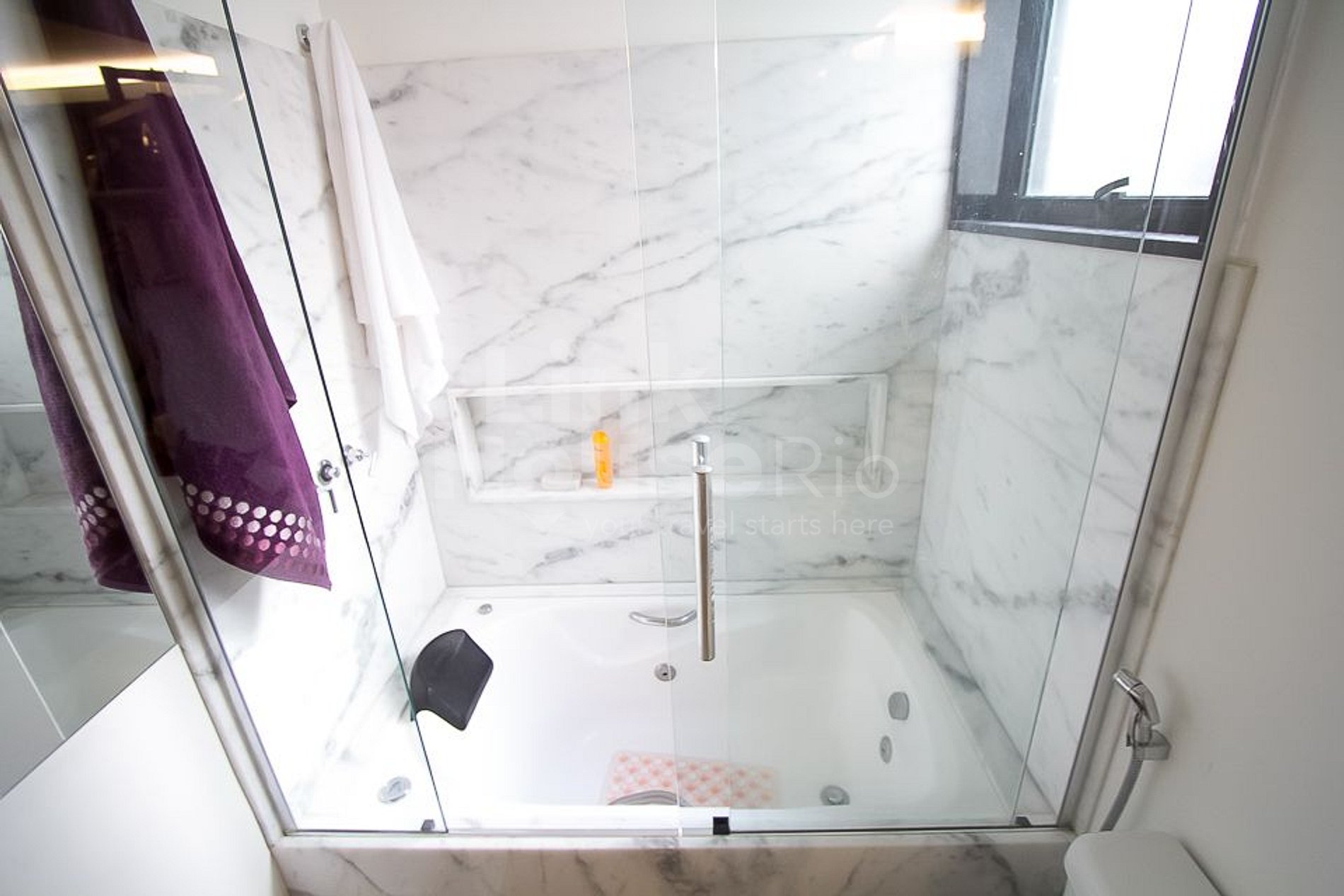 O apartamento é todo equipado com ar condicionado, TV com canais a cabo e internet Wi-Fi.